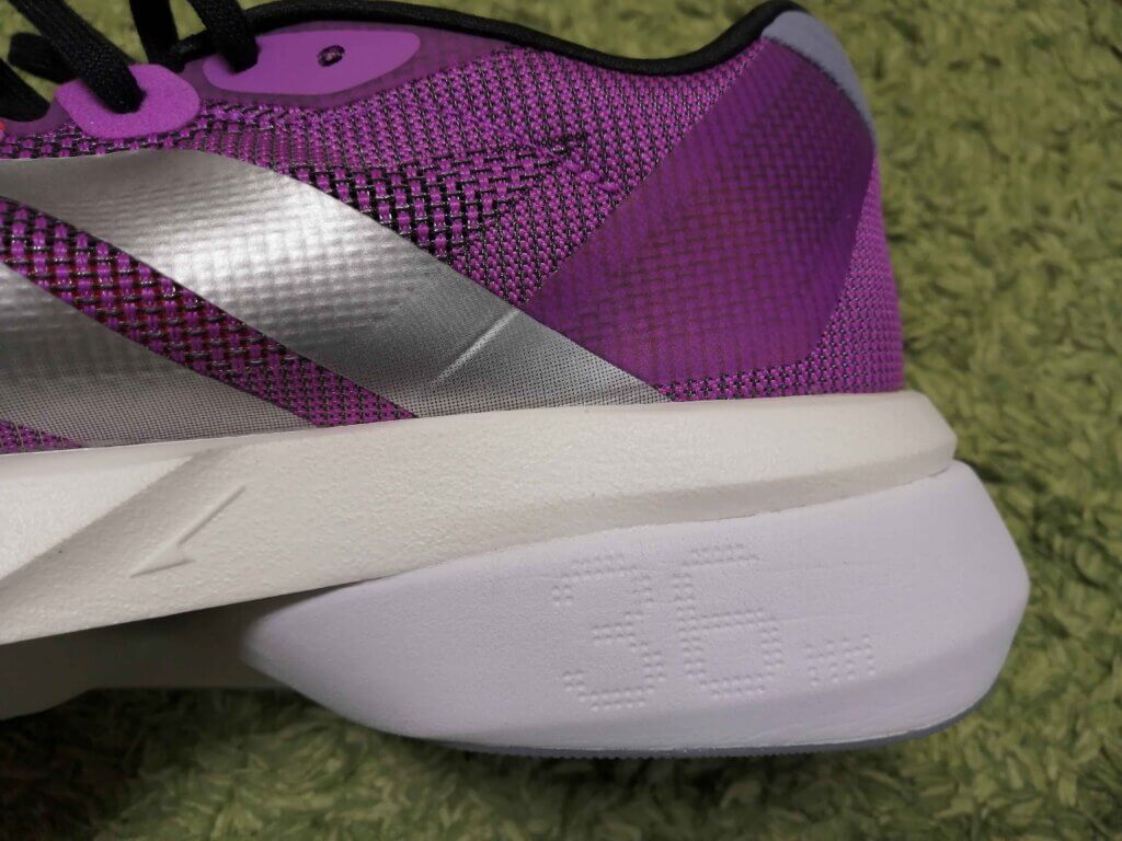 ドロップは6mmと低めで、ヒール接地部には硬さのあるLIGHTSTRIKEを配置。