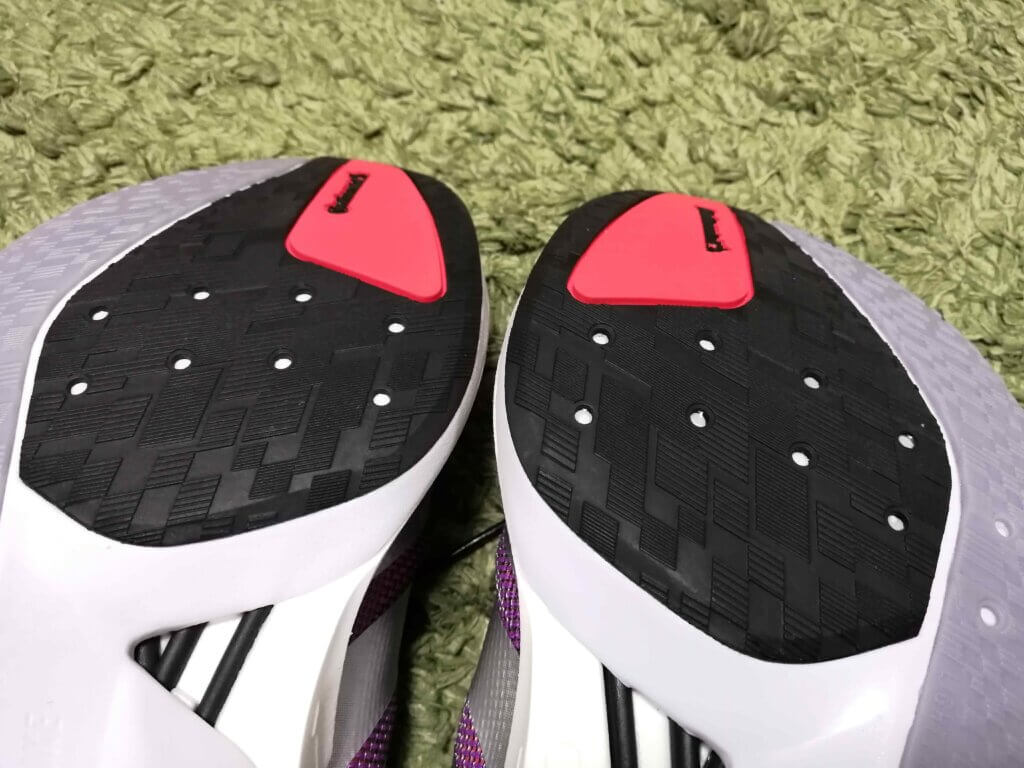 蹴り出し時に親指付け根(コンチネンタルラバー部)を意識しないと力が逃げやすいと感じました。消耗の激しい部分も3㎜ほどの厚みがあり耐久性は高そうです。