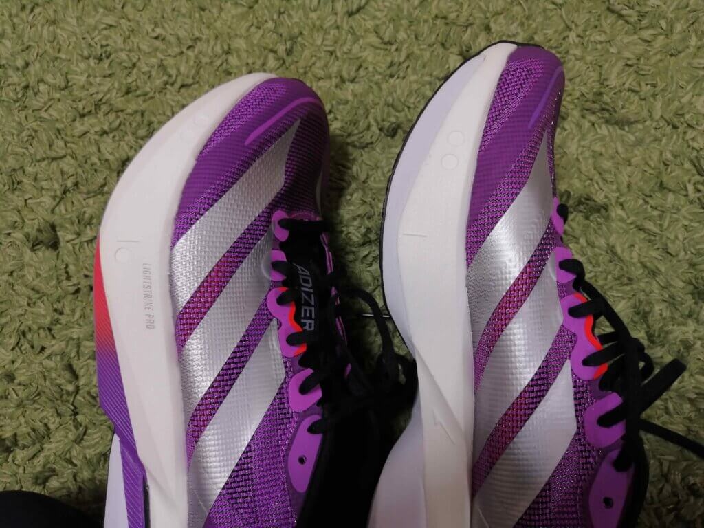 前作ボストン12に続き、配色によっては分かりにくいものの、上位モデル「Adizero Adios Pro 4」に近いシルエットを採用しています。