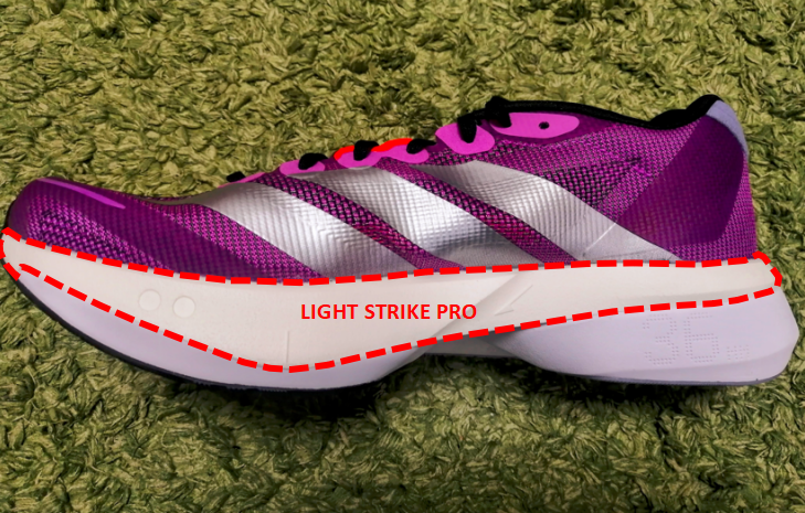 推進力と安定性のバランスを保ちながら、**低密度・高反発素材「LIGHTSTRIKE PRO」**を約13.8%増量しつつ、全体の軽量化にも成功しています。