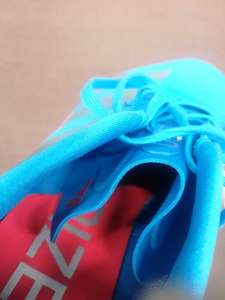 WOVENアッパーは薄手ながら面でフィットするため、紐をしっかり締めると足に吸い付くような一体感が得られます。