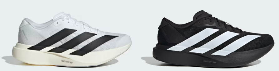 ナイキのヴェイパーフライの独断場に突如現れたのが、アディダスのトップレーシングモデル「ADIZERO ADIOS PRO EVO 1」。2023年に登場し、税込82,500円という超高価格帯ながら、片足約138gという驚異的な軽さと、LIGHTSTRIKE PROフォーム+前足部ロッカー構造による強力な推進力から、“究極の勝負シューズ”として注目を集めました。