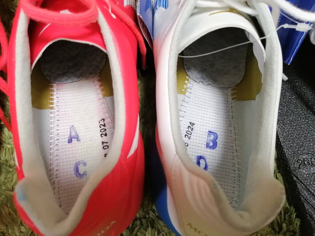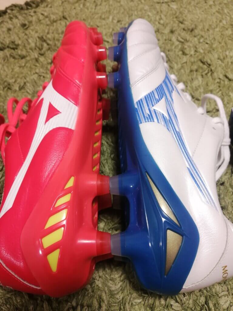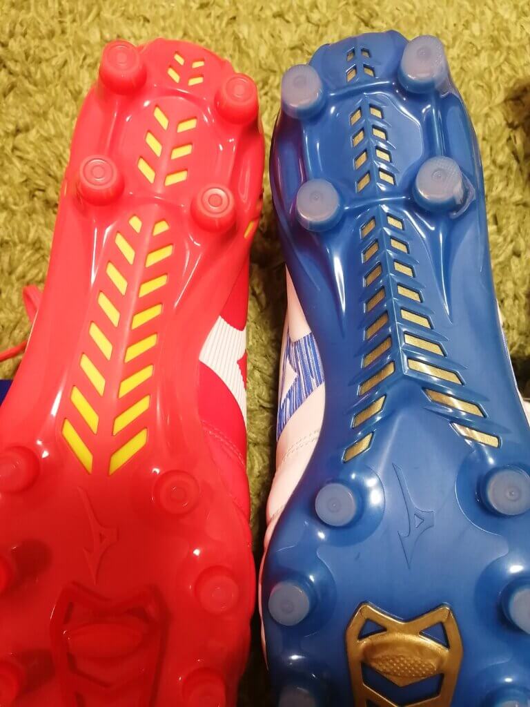 二層構造である点は共通していますが、中足部からヒールにかけて形状の見直しが行われています。ただし、スタッド(ポイント)の配置は変わっていません。