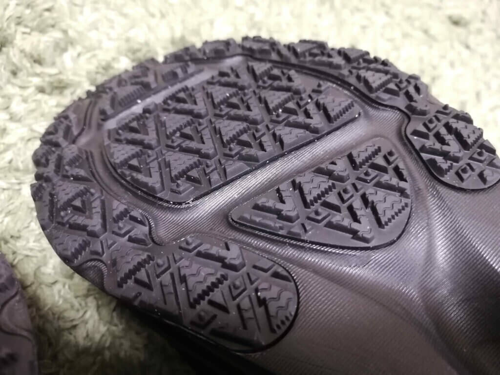 一般的なGTXモデルでは、アッパーの内側にGORE-TEXを配置することで防水性を確保する設計が多く見られます。しかしボメロ18 GTXでは、それに加えてアウトソールも専用設計となっています。