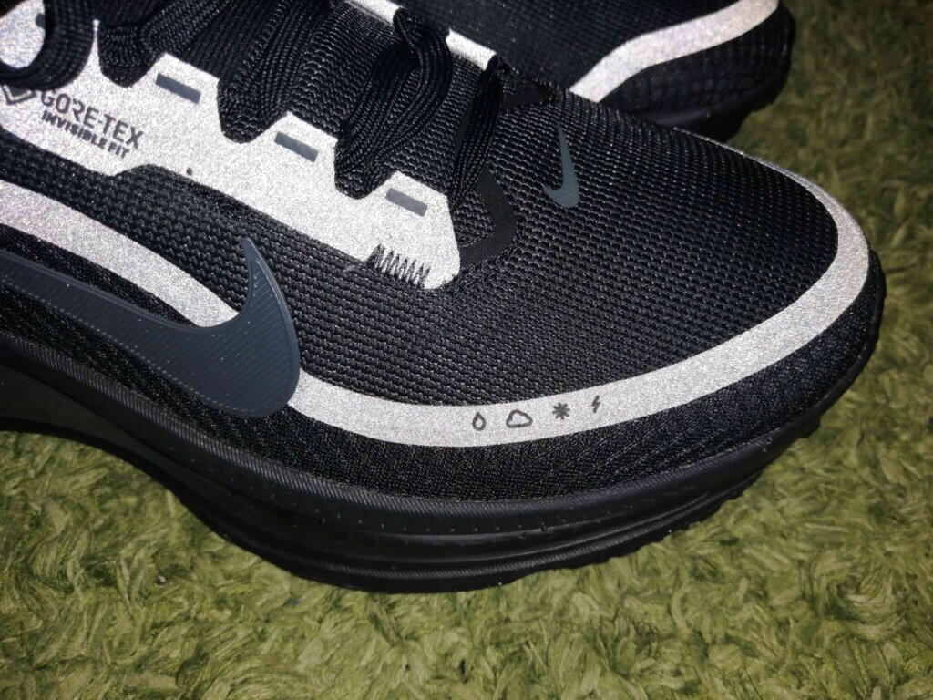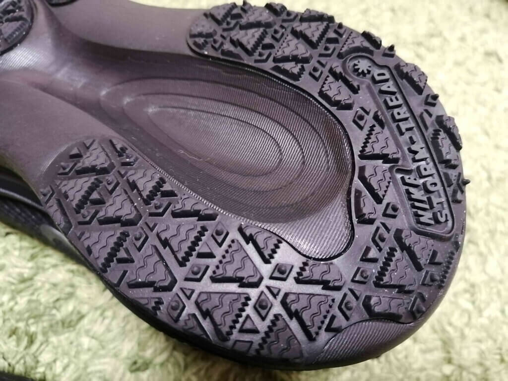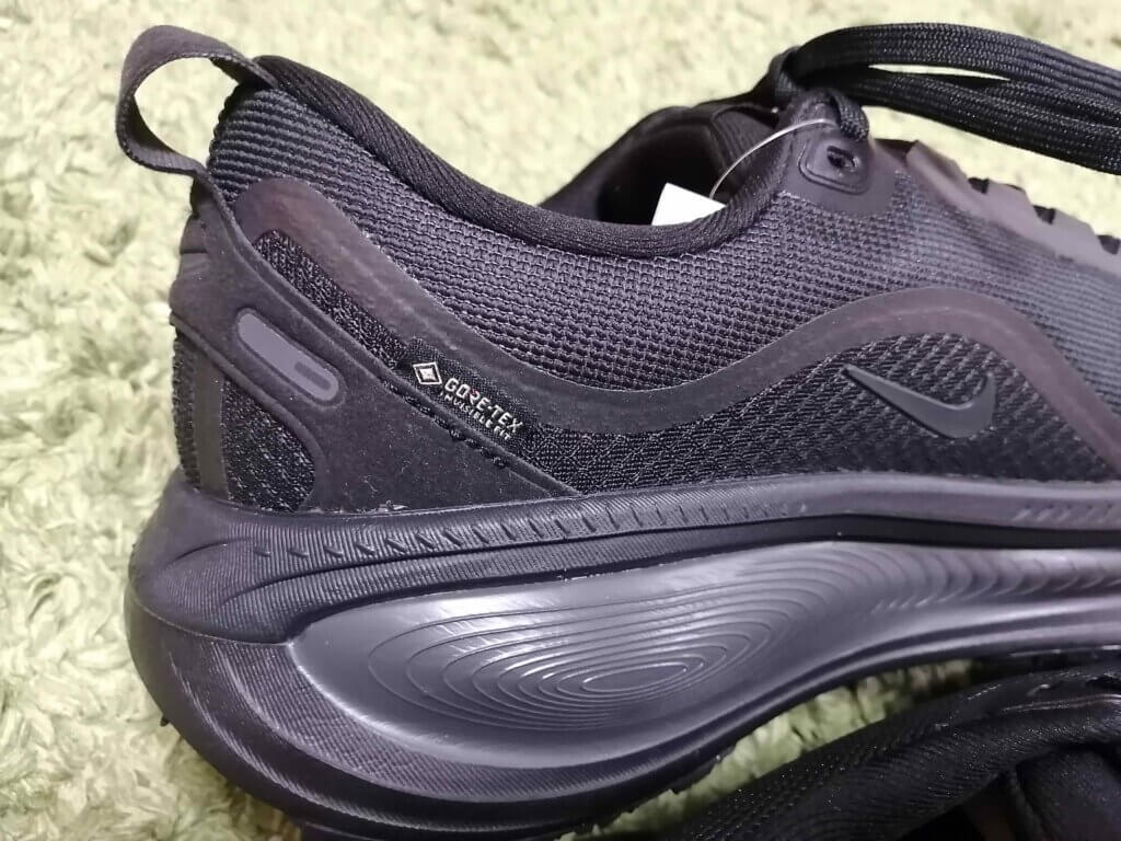 雪道や凍結路面でのグリップ力を高めるため、通常モデルとは異なるトレッドパターンを採用。なお、同じくGTX仕様を展開するNike Pegasus GTXと共通のアウトソールが使われている点も特徴です。