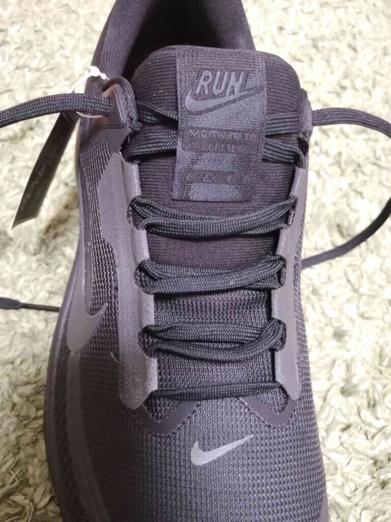 カラーリングはブラックで統一。サイドのスウォッシュは控えめで主張は強すぎず、全体として落ち着いた印象に仕上がっています。存在感はありながらも派手すぎないため、ランニング用途はもちろん、タウンユースや通勤用としても使いやすいデザインです。