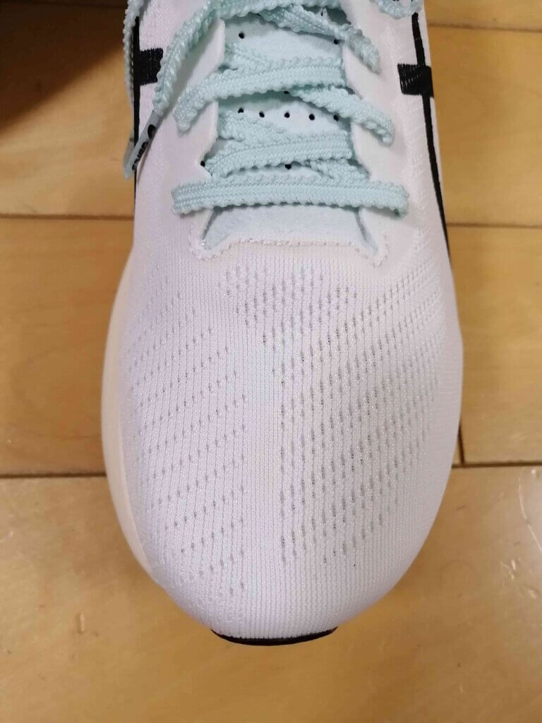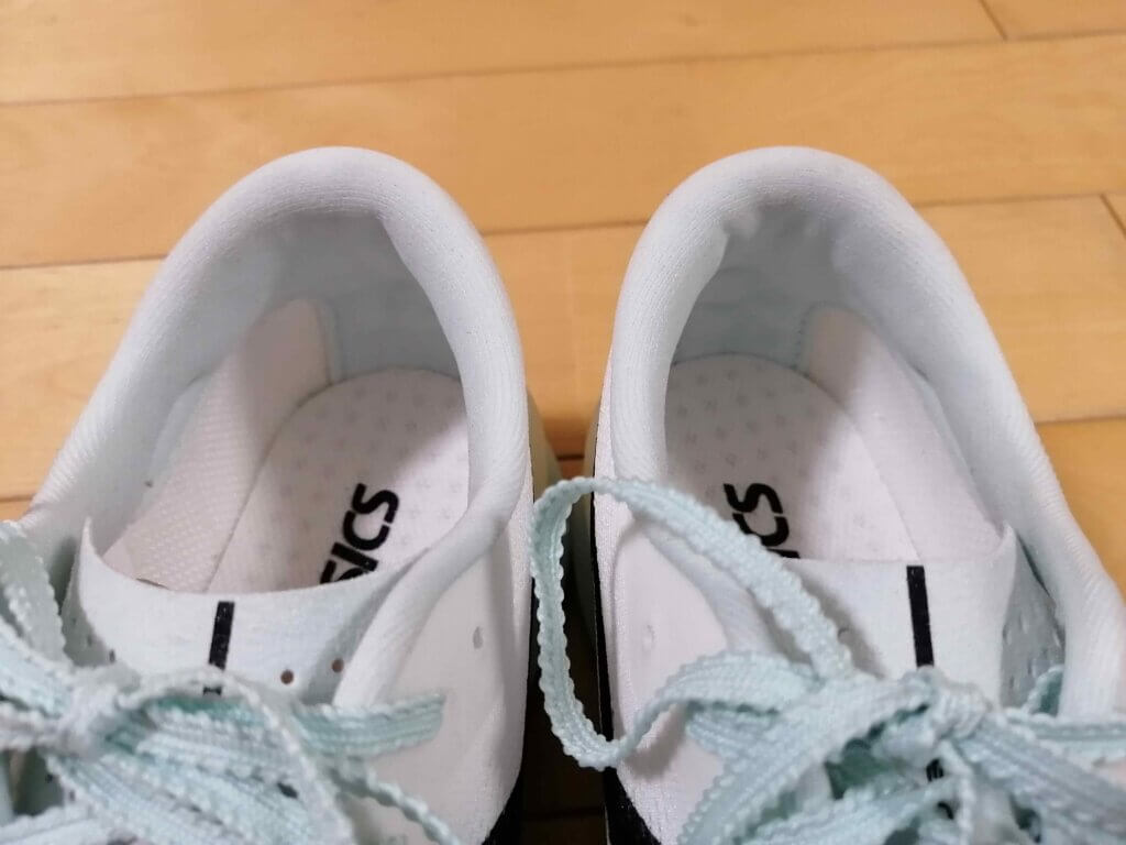 以前のアシックスのシューズは、ミズノやアディダスと比べるとホールド性がやや劣る印象がありました。しかし、近年の厚底モデルではその点が大きく改善されています。さらに、つま先部分だけでなく、立体的に設計されたヒールカップによって、かかとのフィット感も非常に高まっています。