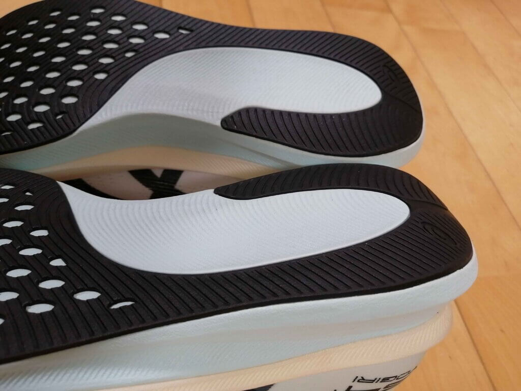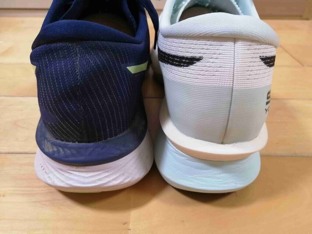 S4+(右)はマジックスピード3(左)よりヒール部分も厚底ですが、安定性を持たせるために、ミッドソール(FF Turbo+)はパンタグラフ形状になっています。